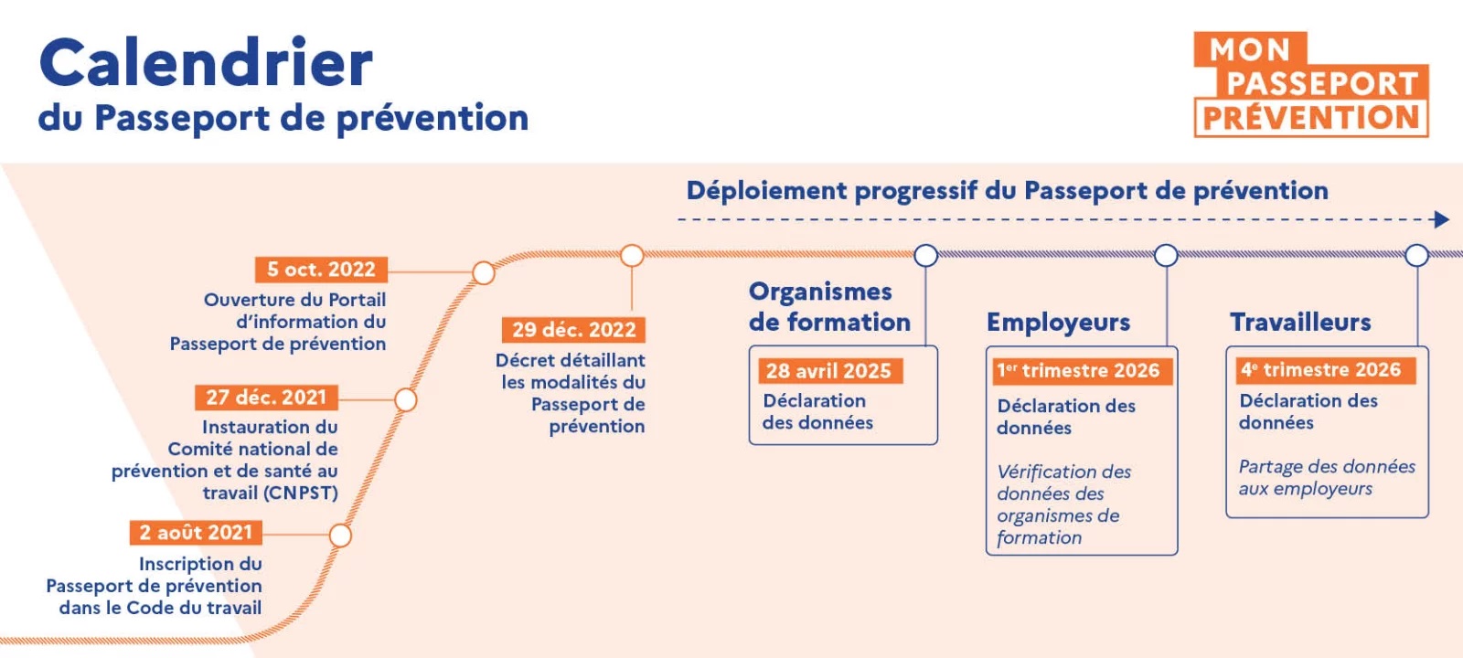 Le déploiement du passeport de prévention se fait par étapes pour en faciliter l’appropriation :